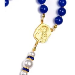 Deep Blue Jade, Pearls, Sterling Silver Precious Crucifix And Center