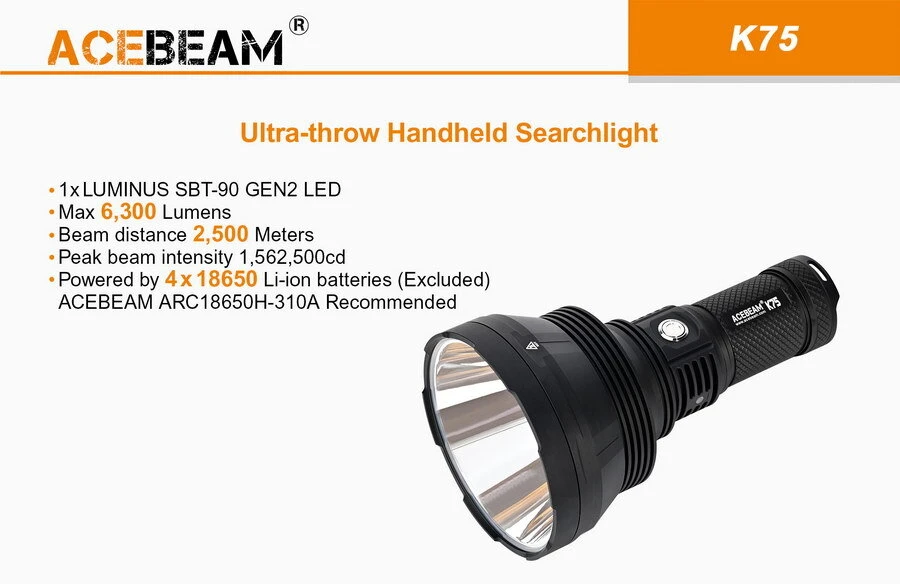 This spotting torch from AceBeam is a real monster. A throw of 2.5 kilometers and a blinding 6,300 lumens jumping out of this large reflector – lets just say games of spotlight will end very quickly. This beam has a lot of spill light for near to mid range illumination too.