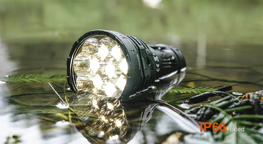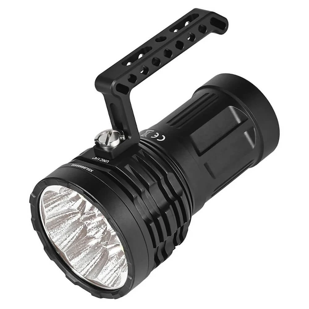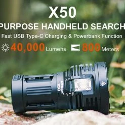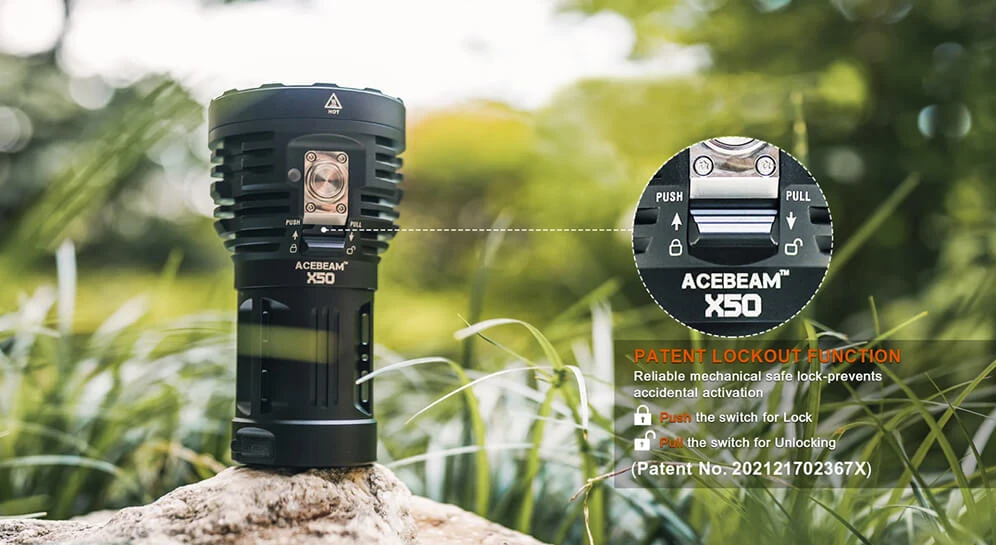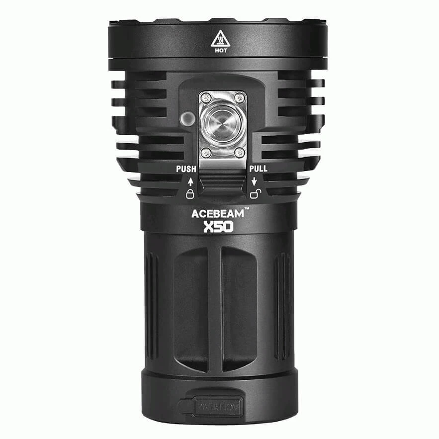 The AceBeam X50 is packing 8 CREE LEDS (XHP70.2) and a fat internal rechargeable battery (4250 mAh).