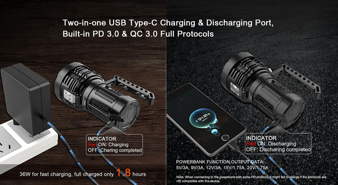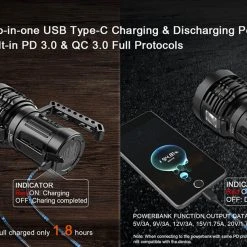 It charges via USB-C, which means a fast 1.8 hour recharging cycle. TorchMonster loves this.