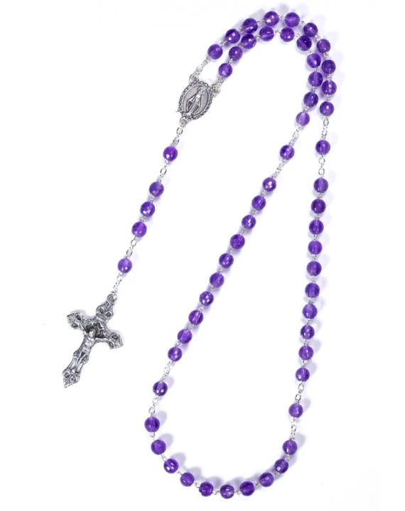 This Rosary is made entirely in certified Amethist 6mm faceted beads.