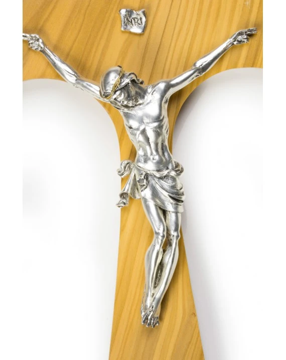 This Big Wood Tau Crucifix is entirely in solid Olive wood with shine metal Christ body.