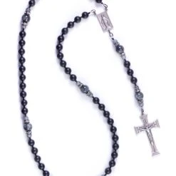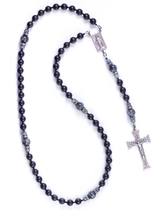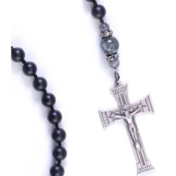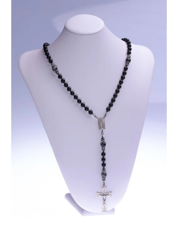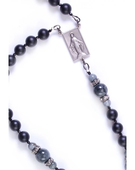 Rosary Entirely made in Matte Black Onyx. The Paters are made in Eagle Eye Stone. The exclusive Center And the Crucifix are in Sterling Silver 925.