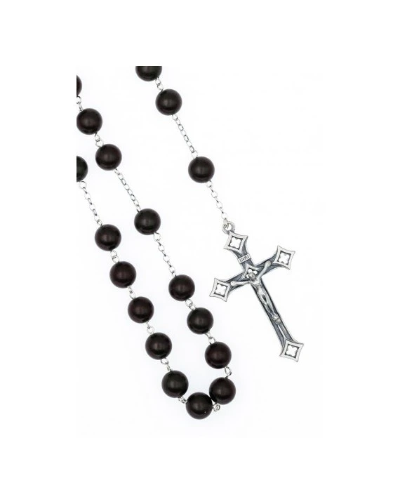 Rosary in Ebony, a hard and precious wood. Entirely made of 925 Silver.
