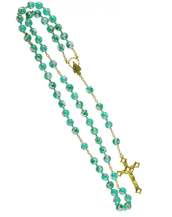 Every bead is made in Glass from Murano, and little glass roses are enclosed in the beads.