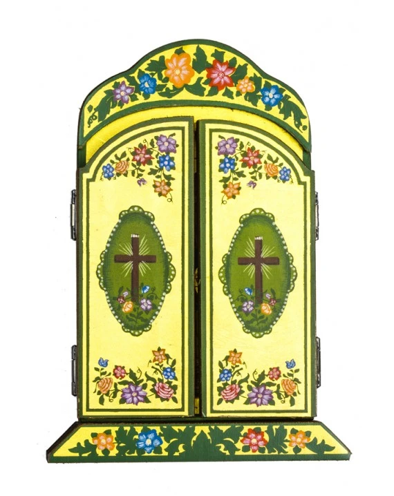 Triptych with the Holy Family in the center and two Angels on each side.