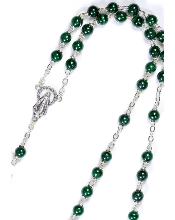 The precious Malachite stone with striped green color, in a strong Rosary handmade in Italy