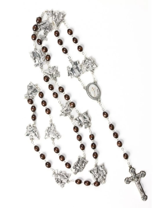 Special Wooden Rosary with the 12 station of the Via Crucis represented in 12 metal shaped medals.
