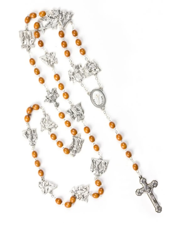 Special Wooden Rosary with the 12 station of the Via Crucis represented in 12 metal shaped medals.