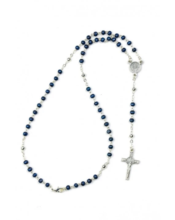 St Benedict blue wooden Rosary with metal Crucifix and Center.