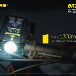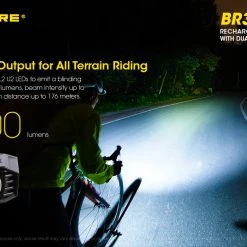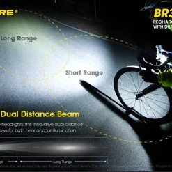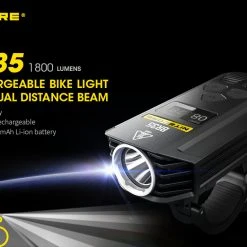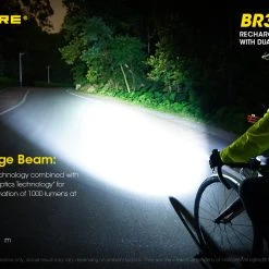 The NITECORE BR35 bike light uses an innovative dual distance beam, similar to car headlights, to simultaneously light distances both near and far to eliminate dark zones and ensure safety. Equipped with two powerful CREE XM-L2 U2 LEDs the BR35 produces a scorching 1800 lumen max output with 182 yards of throw to provide users with ample light for multiple environments. A simple three button user interface allows users to easily toggle light modes (short range beam, long range beam, dual range beam) using the mode (M) switch and adjust brightness levels using the plus (+) and minus (-) switches while on the go.