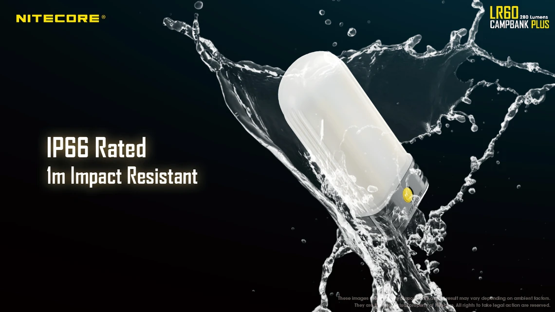 The Nitecore LR60 is constructed from fire-retarded polycarbonate materials yielding an impact resistance of up to one meter. Additionally, the lantern is rated IP66 water resistance, protecting it from light rain and splashes. Weighing under 142 grams with a sleek modern design, the LR60 is the best mobile, all-in-one solution for lighting and power for the outdoor trekkers.