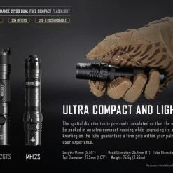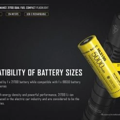 The Nitecore MH12s is using the new 21700 battery (included) but also comes with an insert sleeve so it can take 18650 batteries.