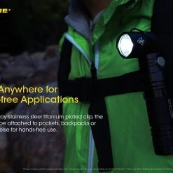 Heres an exciting evolution at Nitecore to give you a forward facing beam. The torch head can rotate from the standard position through four clicks till its facing 90 degrees. So you get the power of 1000 lumens pointing forward from you jacket.