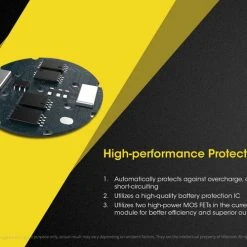 - Multiple safety protections from over-heating, over charging, and over discharging