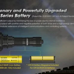 The new Nitecore P30i is a serious player. By stacking a large format rechargeable battery and a large reflector, you’re looking at 1 kilometer range and 2000 lumens of light.
