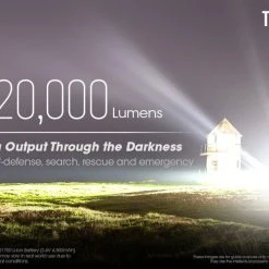 This high performance torch is truly a monster of illumination with 19 LEDs for a powerful 20,000 lumen max that is astonishing to witness and cuts through 290 meters of the darkness. Use this monster for anything from outdoor activities, industrial uses, search and rescue or contacting life on Mars. Notice that the range is under 300 meters – it’s a floody wash of light – not a long range thrower. The reflector makes sure the light is all dumped in front of you.