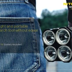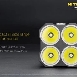 Four massive CREE XHP35 HI LEDs are set in Nitecore’s famous reflectors with mineral optic lenses.