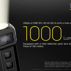 A revolutionary development in the Nitecore T-collection. This keyring sized light gives you a whopping 1000 lumens. It’s only 7 cm long. This light output is realized by a Cree XP-L HD V6 LED light with a maximum reach of 180 meters.