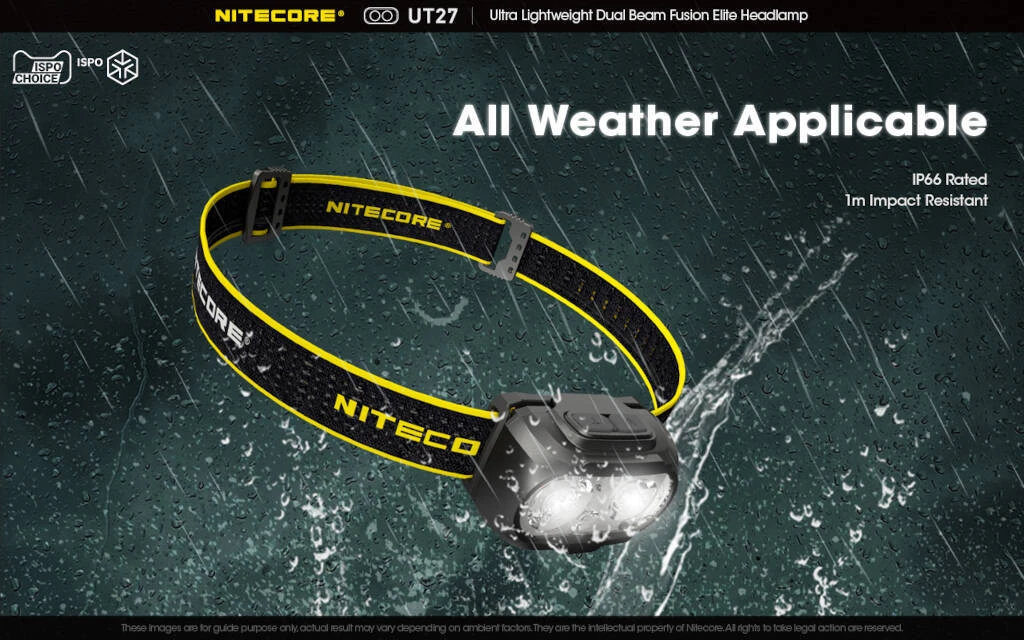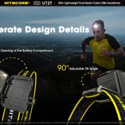 Built on a durable yet compact frame, the UT27 weighs only 74 grams including the battery and headband. The breathable lightweight headband has a built-in silicone strip that firmly secures the UT27 to your dome while helping divert sweat away from the eyes. Reflective decals provide additional visibility to motorists, making it safe for nighttime walking, jogging, or if you’re an over achiever, running.