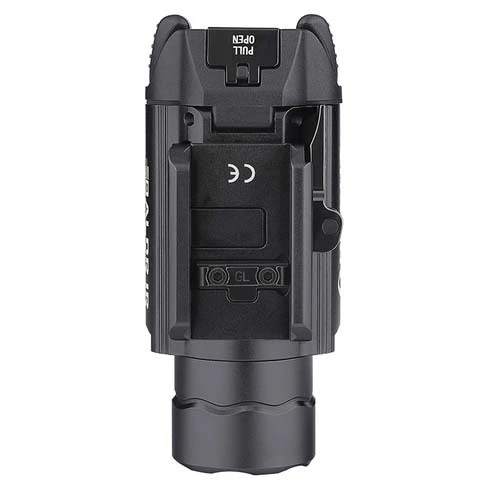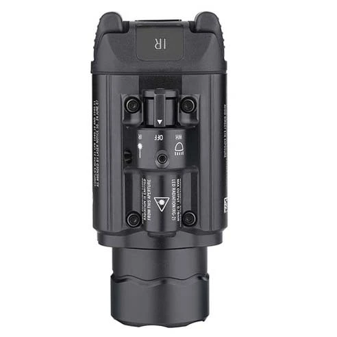 Select and activate the IR mode, it emits a focused IR beam from the bottom, invisible to the naked eye but perfect for night vision goggles. Powered by two CR123A batteries, the light runs much longer than most products on the market. The nimble swing arm allows you to install and detach it with one hand instantly. The two adjustable screws are used to zero the IR beam accurately.