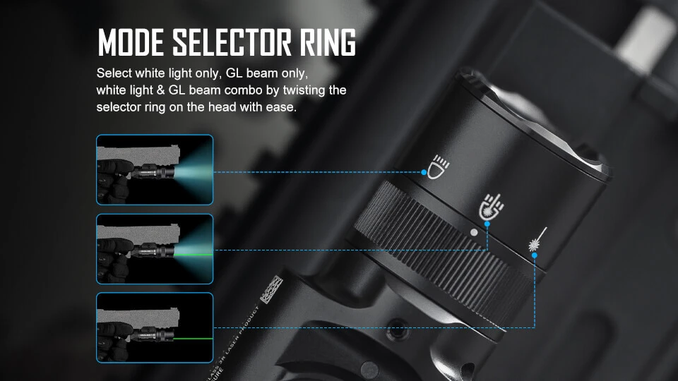 A new mode selector ring to choose between white light only, GL beam only, or white light & GL beam combined.