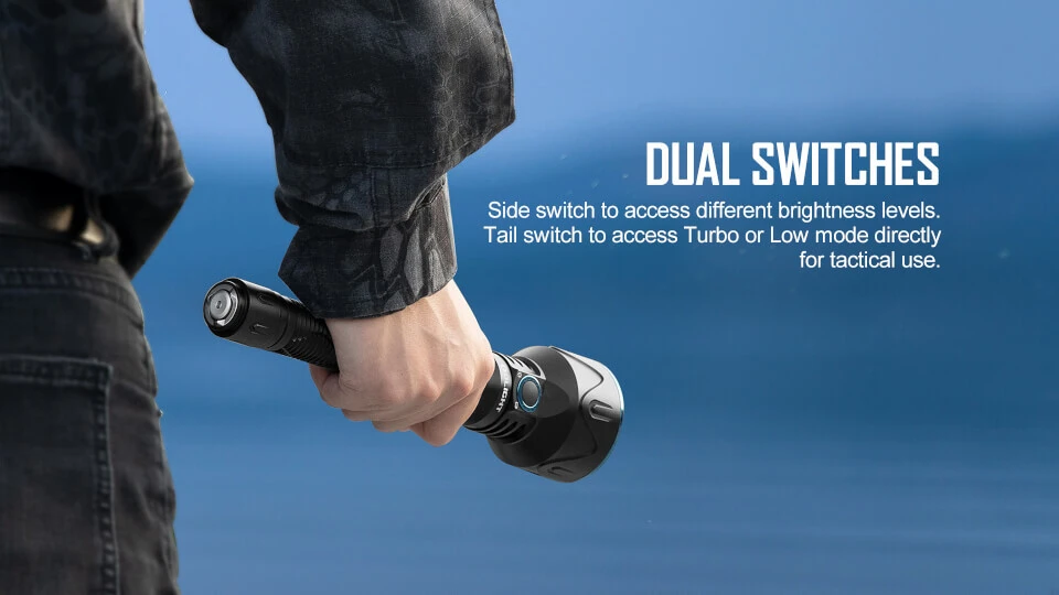 The dual-stage tail switch allows quick and easy access to basic settings, while the side switch can be used to intuitively cycle through 4 brightness levels.