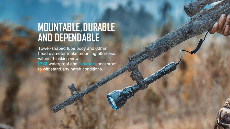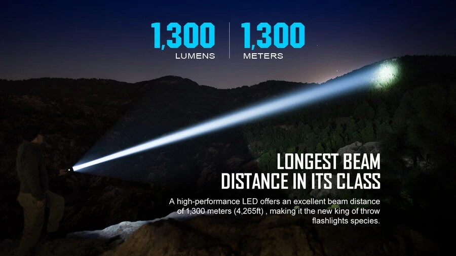 Maximum beam distance of 1,300 metres making it Olight’s longest distance light ever