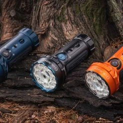 The toggle switch in the middle of the body allows quick access to select either spotlight or floodlight modes, while the upper rotary knob adjusts brightness levels. Surrounding the rotary knob switch are indicators that display the brightness level, battery level, and three RGB light colors. Powered by a customised 24Wh 32650 rechargeable lithium battery, it offers extended runtime and is compatible with Olight’s MCC3 magnetic charging cable. Wrapped by 270-degree silicone, the flashlight’s body surface provides a more comfortable and stable grip. Smaller in size but still powered like a beast, the Marauder mini is a must have for search & rescue, hunters, and all outdoor enthusiasts.