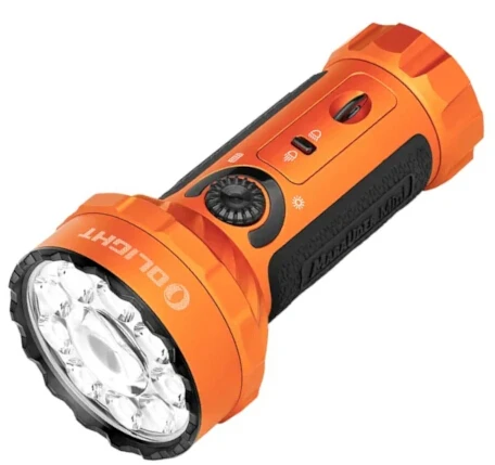 A powerful rechargeable dual beam LED flashlight with both flood and throw. Don’t let its size fool you, the Olight Marauder Mini still packs all the great features of the original. Following the Marauder 2’s lens design composed of 9 LEDs surrounding the centre, it enables seven brightness levels that provide 200-7000 lumens. A large round LED has been added to the centre, offering a 600-meter spotlight beam.