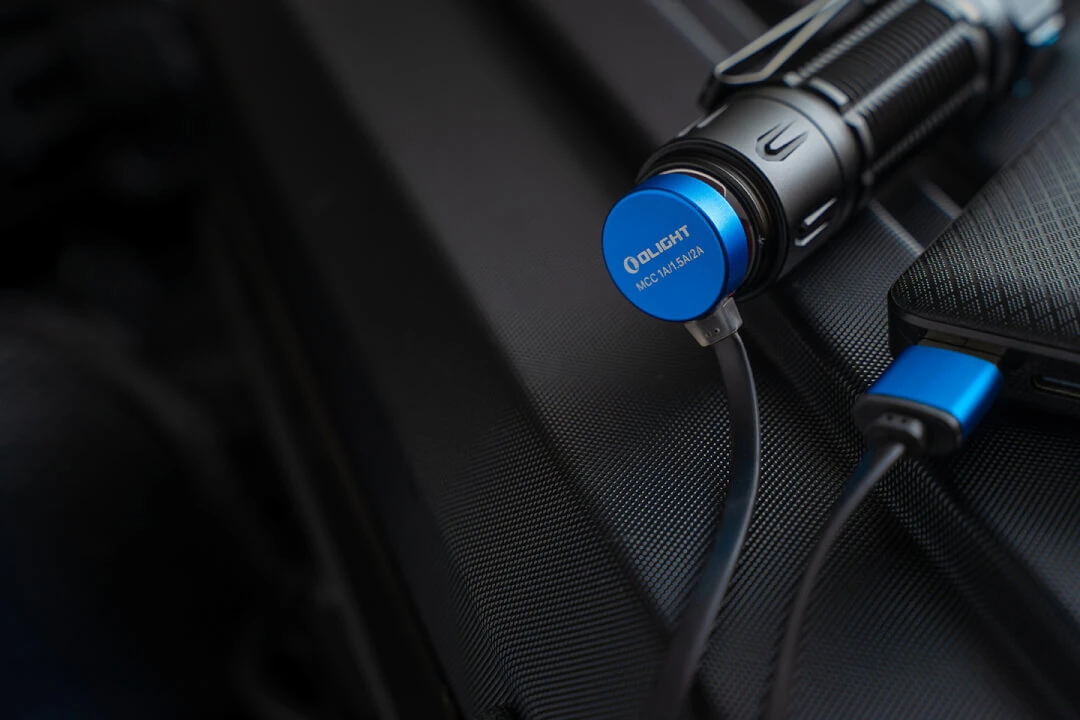 For tactical operation, the dual-stage tail switch allows quick and easy access to the most important settings. The tailcap is also upgraded for compatibility with an optional dual-button remote switch to control it as a WML. Powered by a 5000mAh 21700 battery, the Warrior 3 conveniently recharges via an MCC3 USB magnetic charging cable.