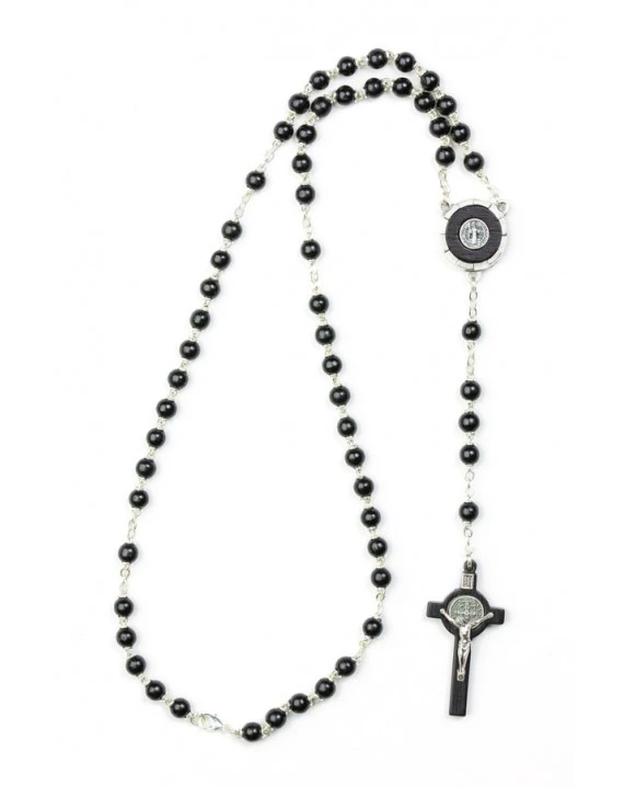 St Benedict wooden black Rosary with metal insert in the Crucifix and a special wooden and metal Center.