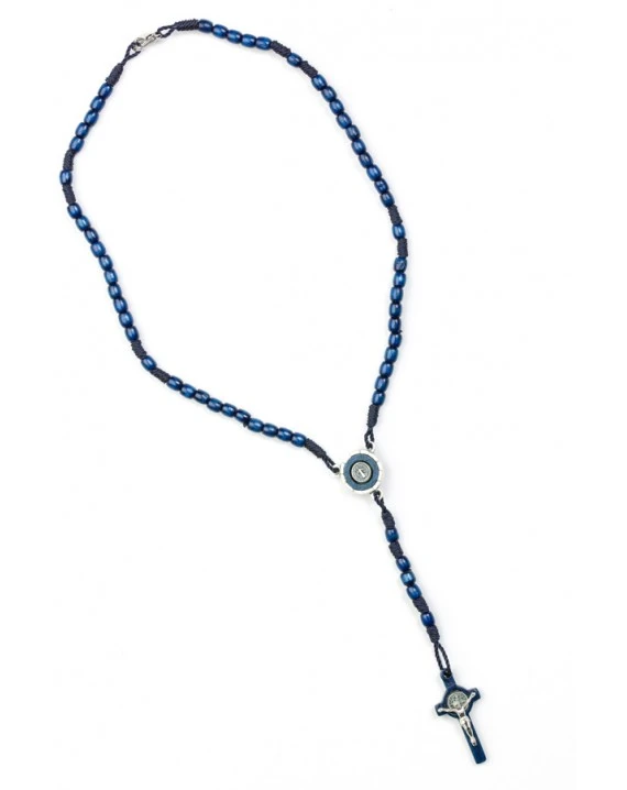 St Benedict wooden and rope blue Rosary with metal insert in the Crucifix and a special wooden and metal Center.