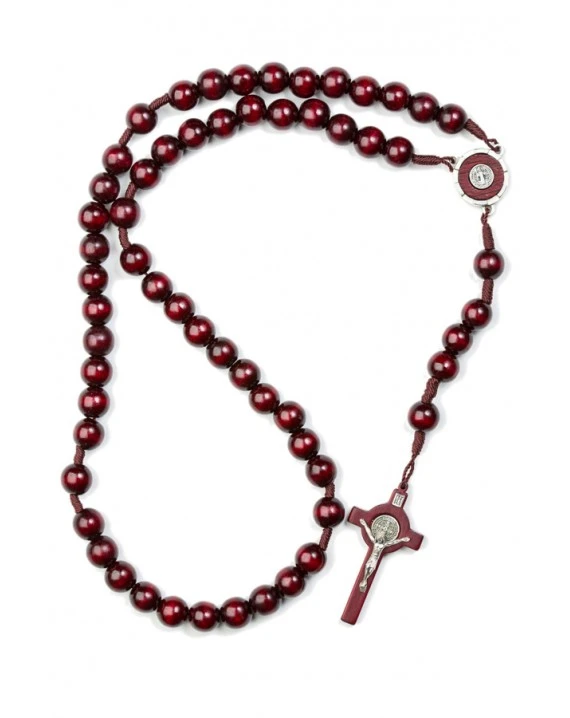 St Benedict wooden and rope dark red Rosary with metal insert in the Crucifix and a special wooden and metal Center.