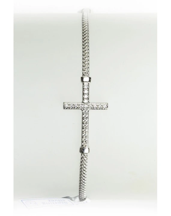 Sterling Silver Bracelet with a fine Crucifix with Strass on it.