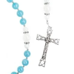 Rosary in Sky Blue Angelite. The Trinity Paters are in translucent white opalite.
