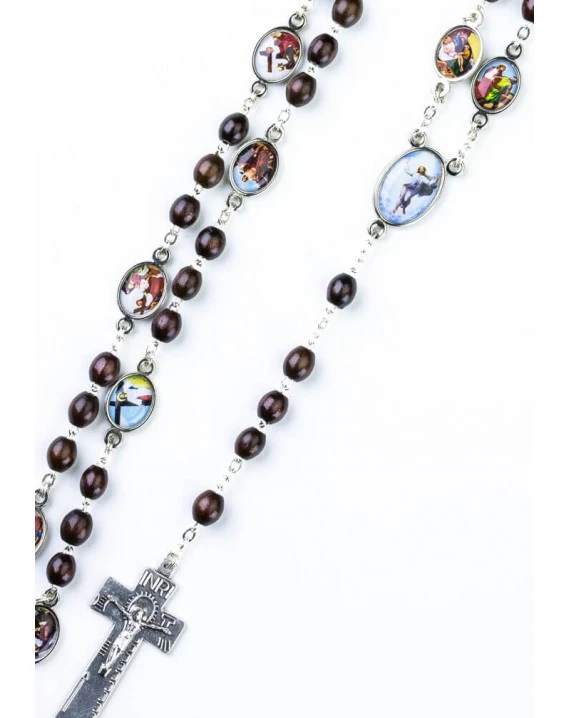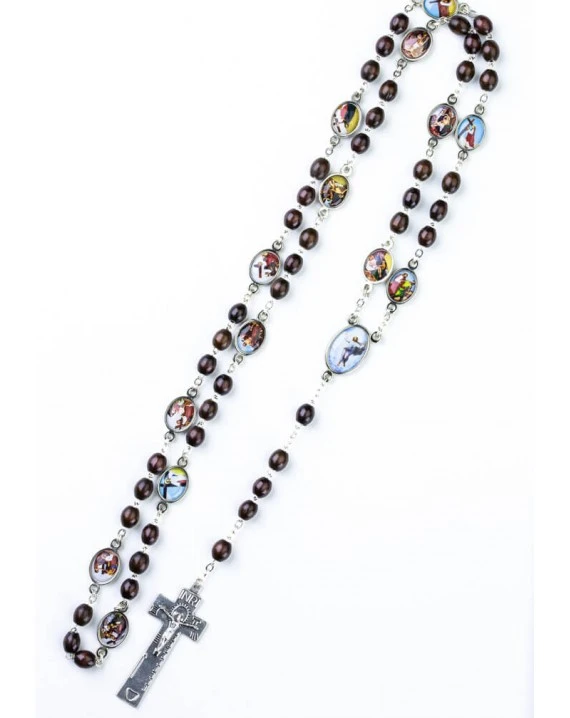 Special Wooden Rosary with the 12 station of the Via Crucis represented in 12 medals.